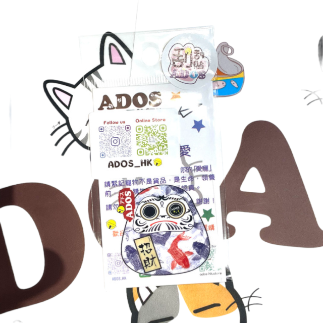 ADOS is a local original brand. Products are based on the stories of "Soda" & Toffee". We hope to spread the concept of love and care for animals. We will donate to different organisations to support animal rescue and protection (please refer to our instagram @ADOS_hk for further details) ADOS exists for the unconditional love of our past, present and furture pets All Dreams Offered Specialty