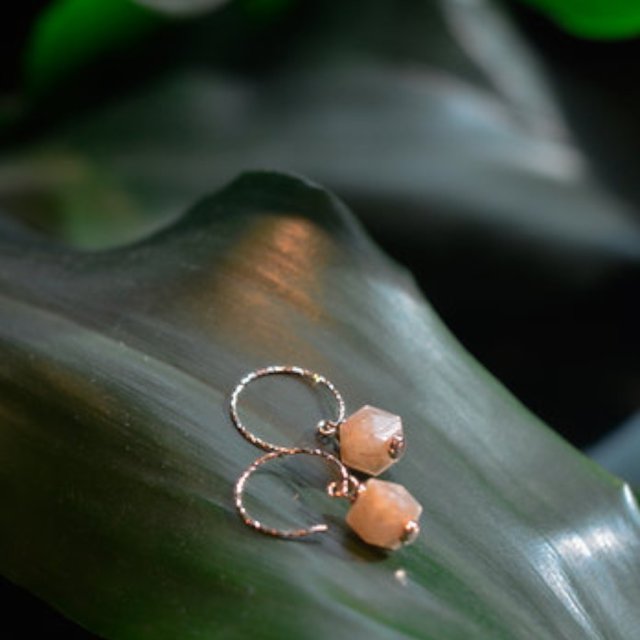 Ways Out Hong Kong | <Lustre> 〈Graceful〉 - Rose Gold Textured C-hoop Earrings with Pink Small Pyramid Cube