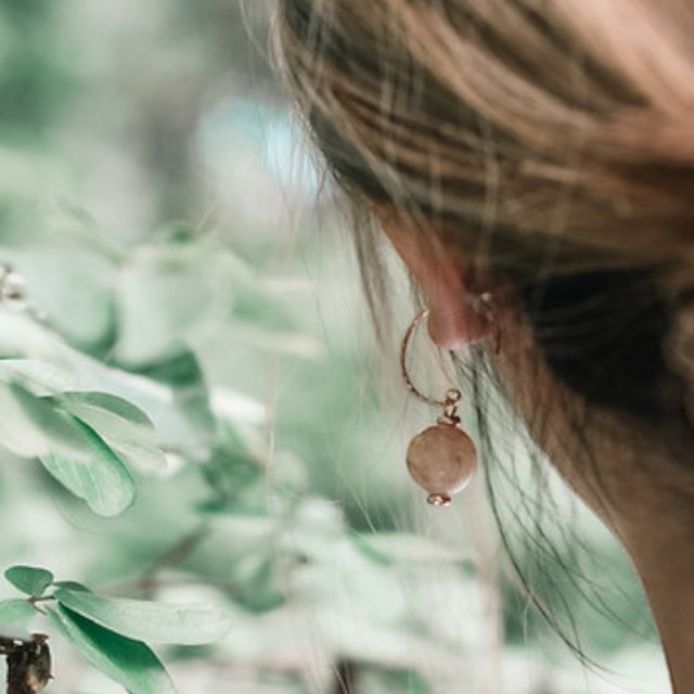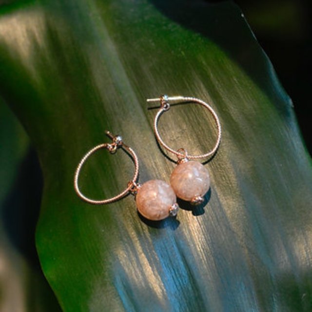 Ways Out Hong Kong | <Lustre> 〈Graceful〉 - Rose Gold Textured C-hoop Earrings with Pink Round Bead