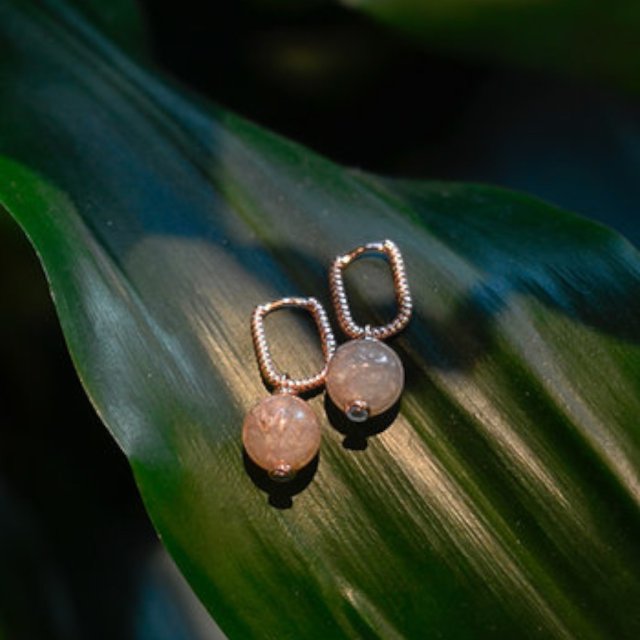 Ways Out Hong Kong | <Lustre> 〈Vibrant〉 - Rose Gold Twisted Rectangle Earrings with Pink Round Bead