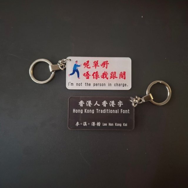 Lee Hon Kong Kai | Hong Kong illustrated keychain with famous quotes 呢單嘢唔係我跟開 I‘m not the person in charge