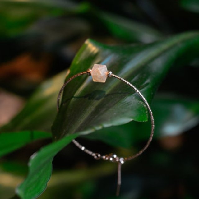 Ways Out Hong Kong | <Lustre>〈Steadfast〉 - Rose Gold Textured Bangle Bracelet with Pink Small Pyramid Cube