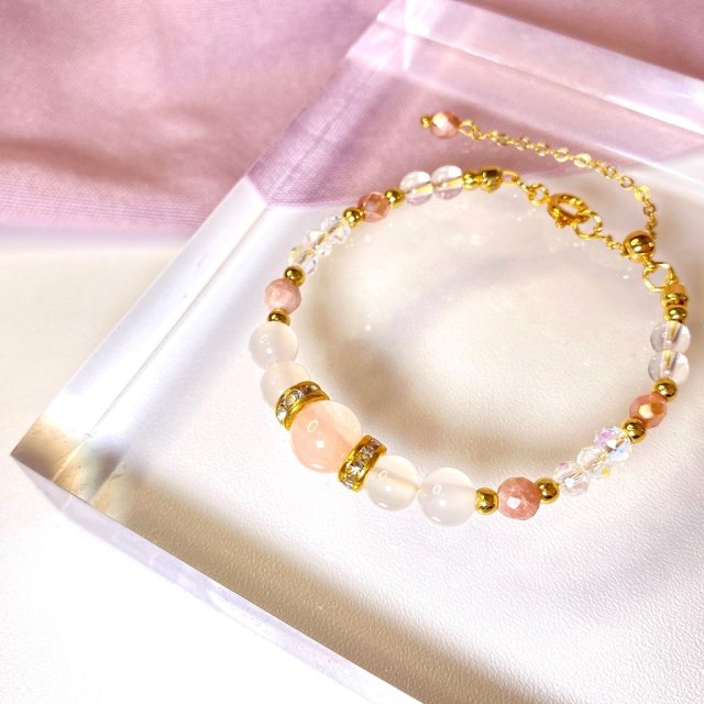 粉晶|白瑪瑙|粉澳寶|天然石可調節手鏈