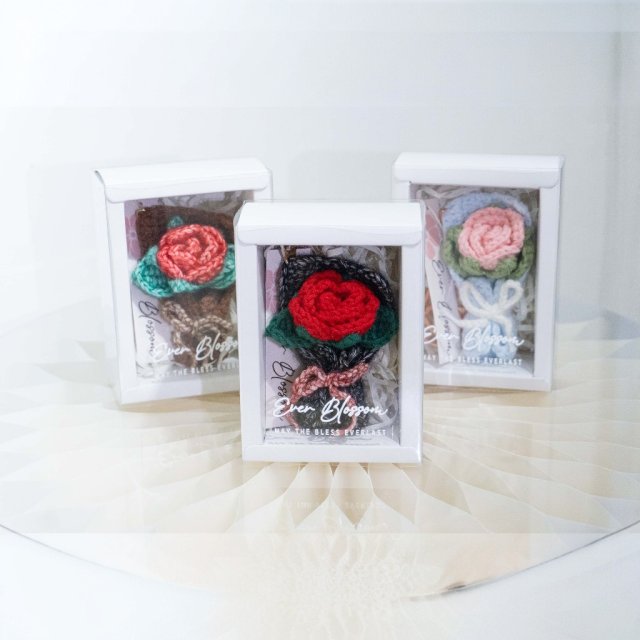 Ever Blossom Gift | Crochet Flower Keychain - Rose
