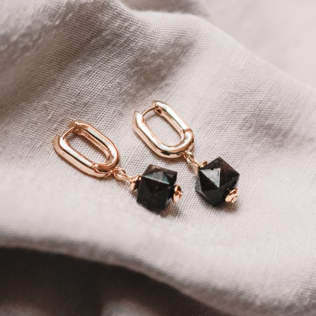 <BOUNDLESS> Small Cube Bead Earrings with Gold Hoops