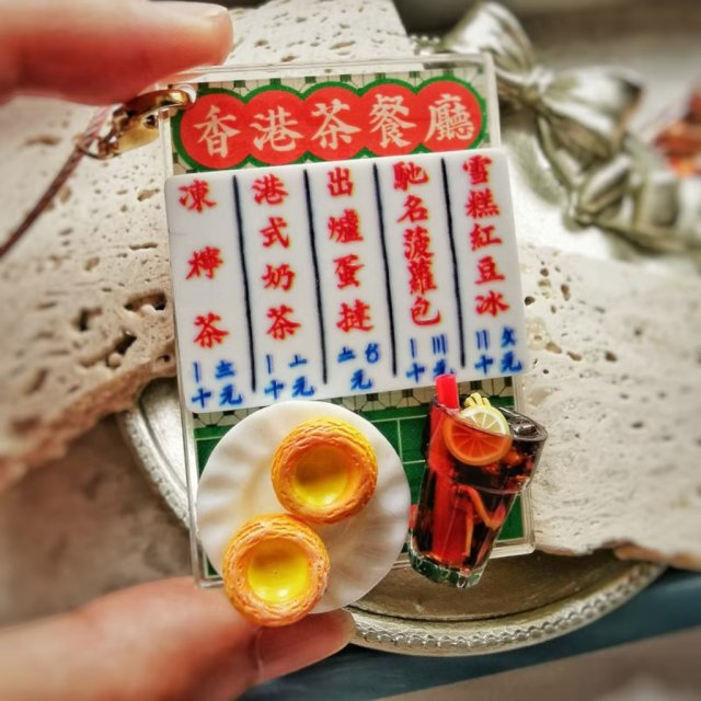 Mimemomall | Miniature Food Toy Keychain (Hua Ma-Iced Lemon Tea + Egg Tart)