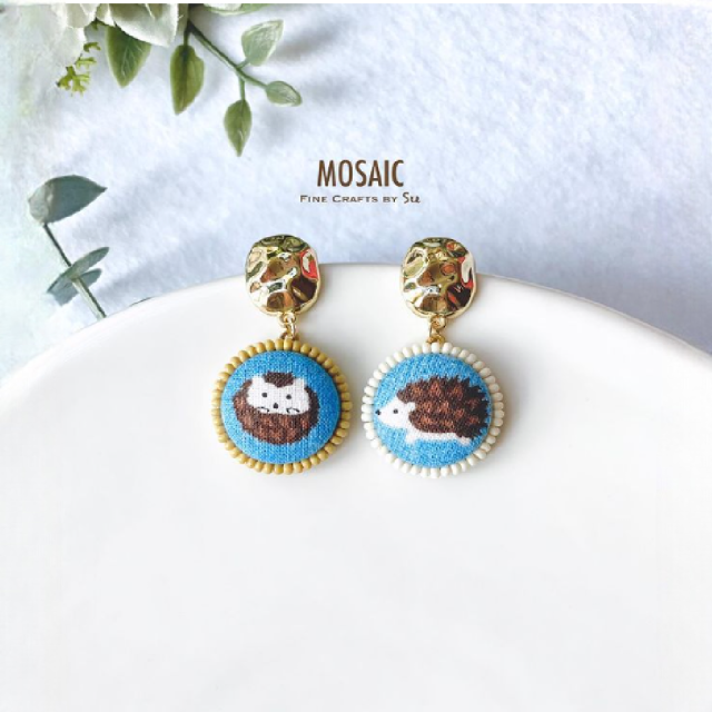 Mosaic~Fine Crafts by Su | Fabric with Beadwork Earrings(Butterfly)