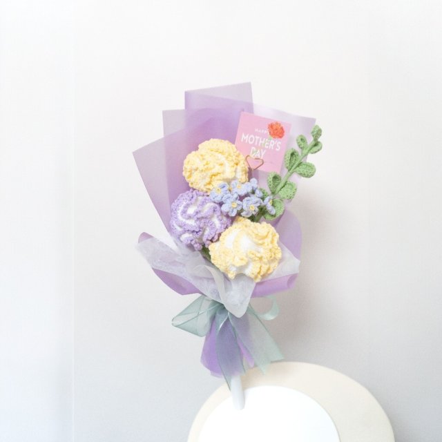 Ever Blossom Gift | Dear Mom Preserved Crochet Carnation Bouquet (Purple)