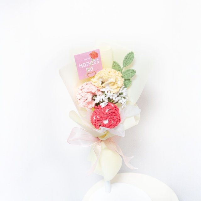 Ever Blossom Gift | Dear Mom Preserved Crochet Carnation Bouquet (Yellow)