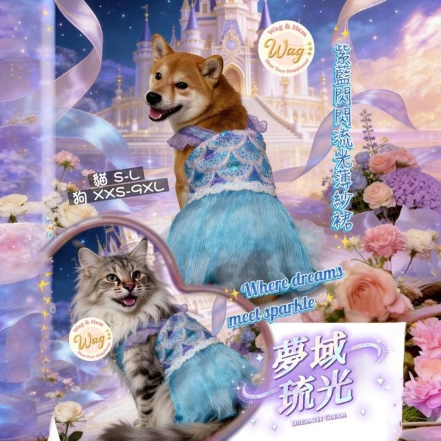 唯繫工房 WAG & HEM | 狗款夢境琉光紫藍閃閃流光紗裙