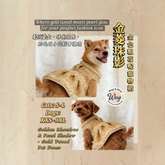 唯繫工房 WAG & HEM | 狗款金菱珠影珠鑽粗花呢金織裙