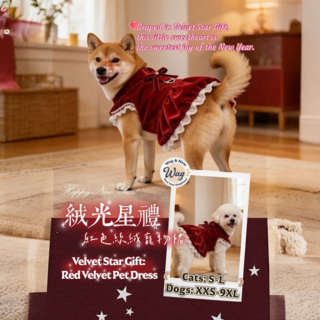 唯繫工房 WAG & HEM | 狗款絨光星禮高貴絲絨裙