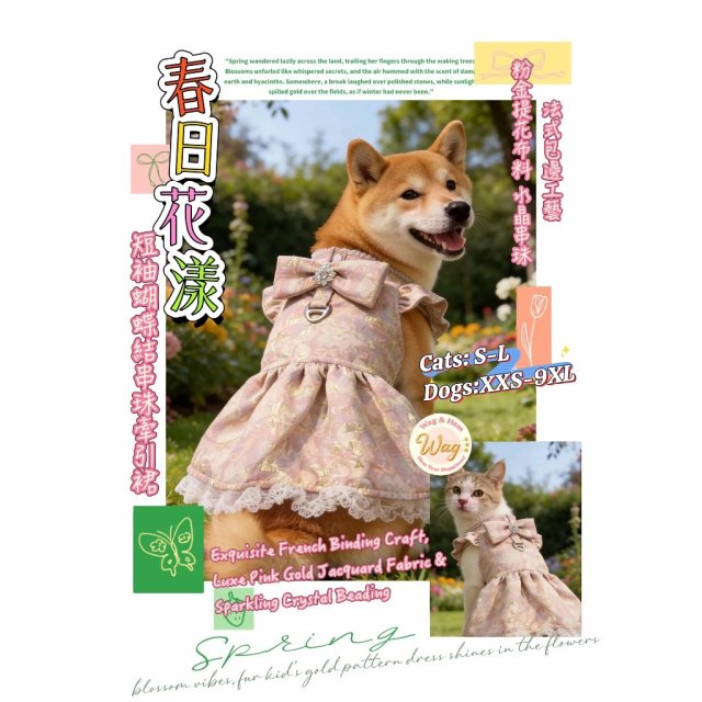 唯繫工房 WAG & HEM | 狗款春日花漾鎏金繁錦提花裙