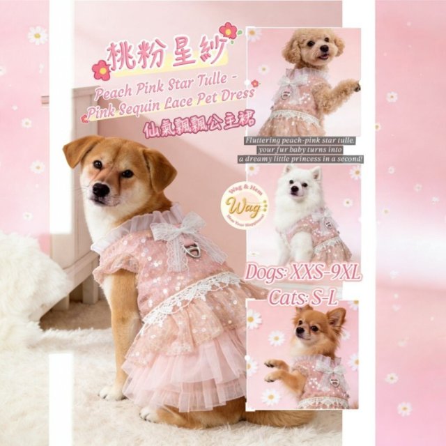 唯繫工房 WAG & HEM | 狗款桃粉星紗仙氣閃閃裙