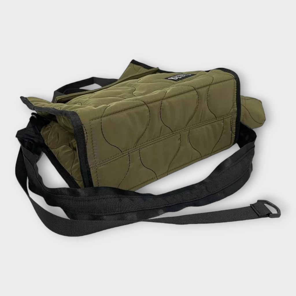 - Made of quilted functional Polyester material with a wavy embroidery design on the surface. It feels very soft and smooth. The high density nylon material is very wear-resistant, can take up heavy duty and also lightweight. It has a water-repellent coating. It is easy to clean and maintain