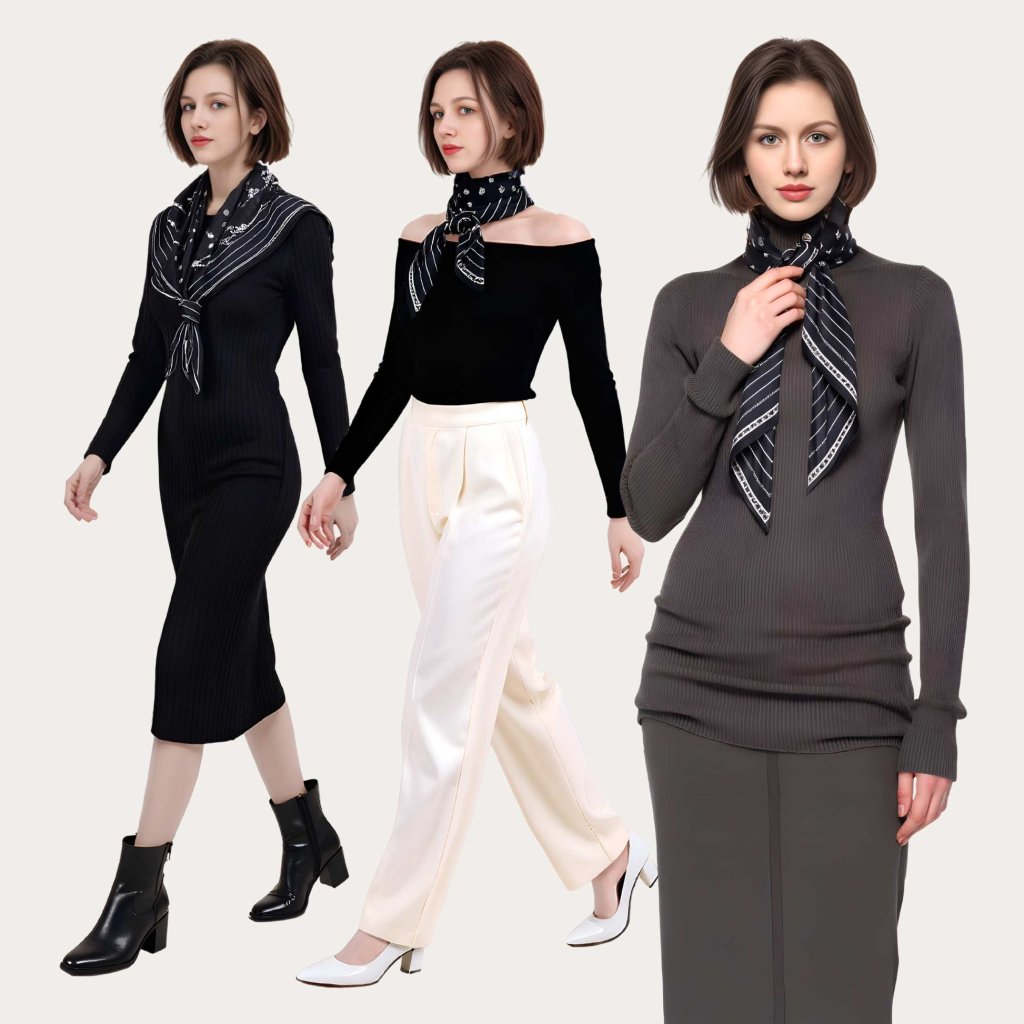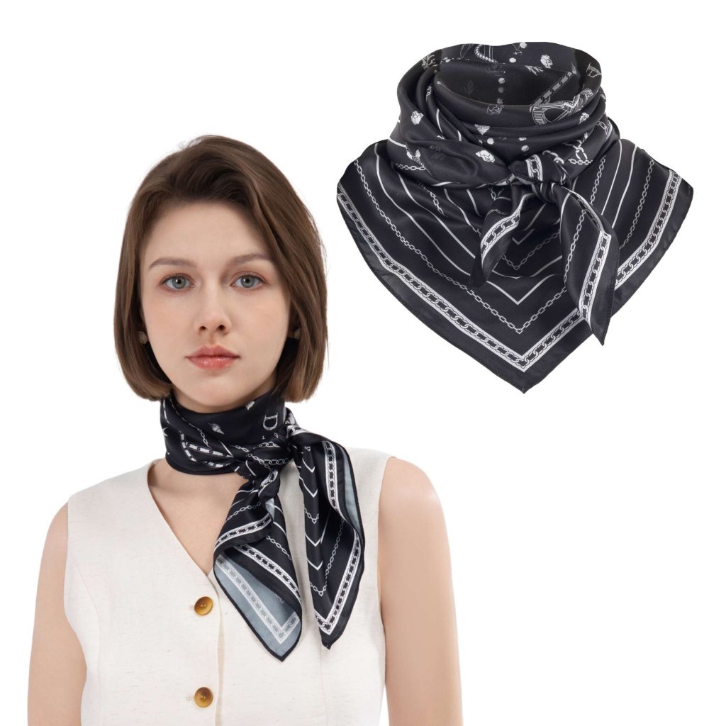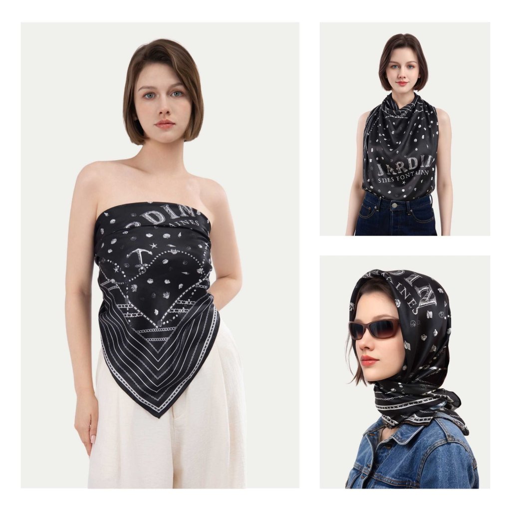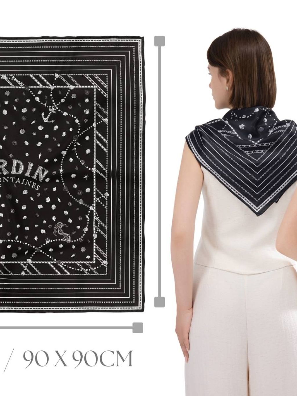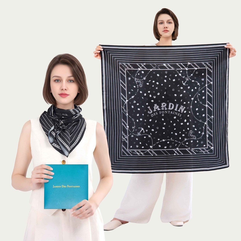 JARDIN DES FONTAINES | Classy and Fabulous Ink Black Silky Scarf (90cm)