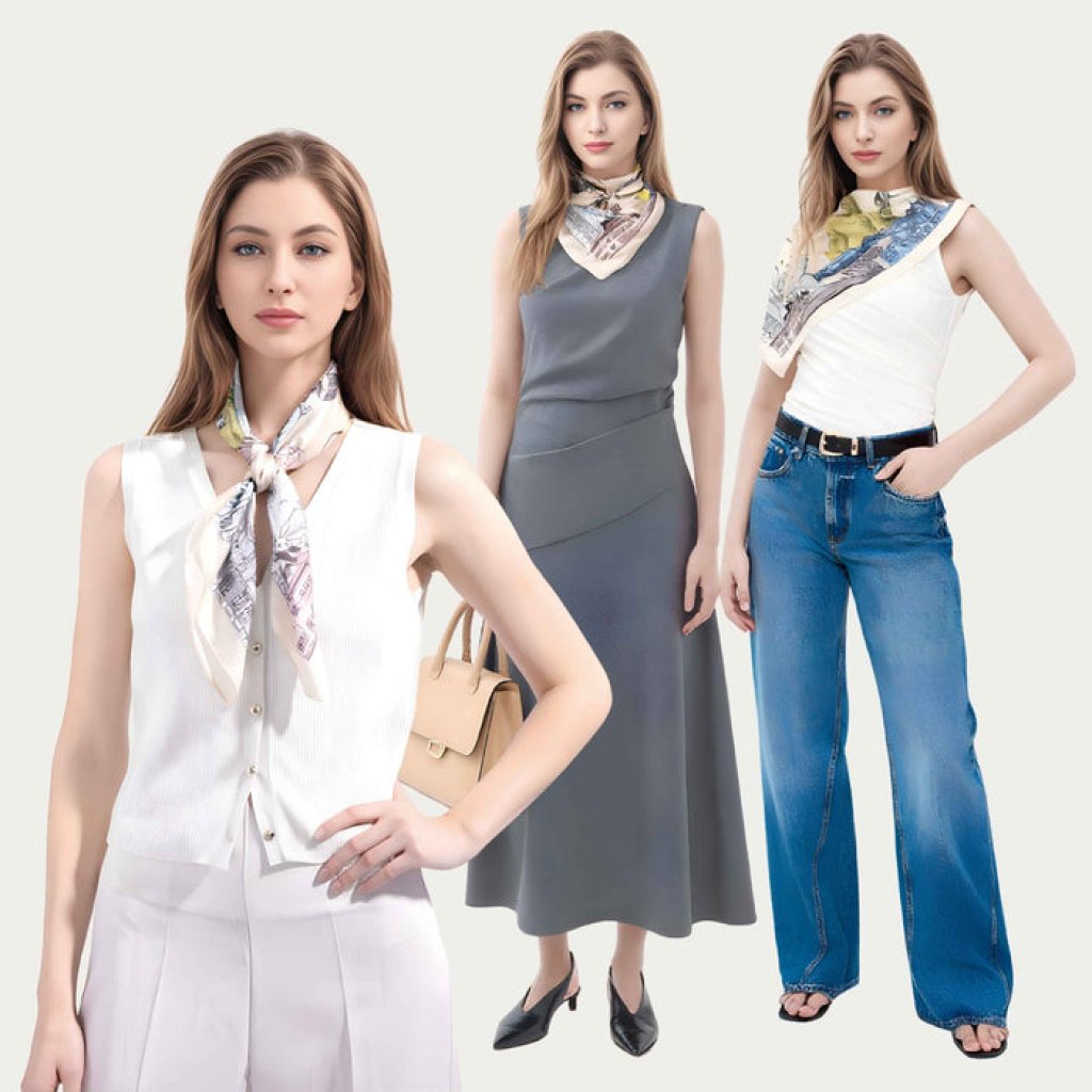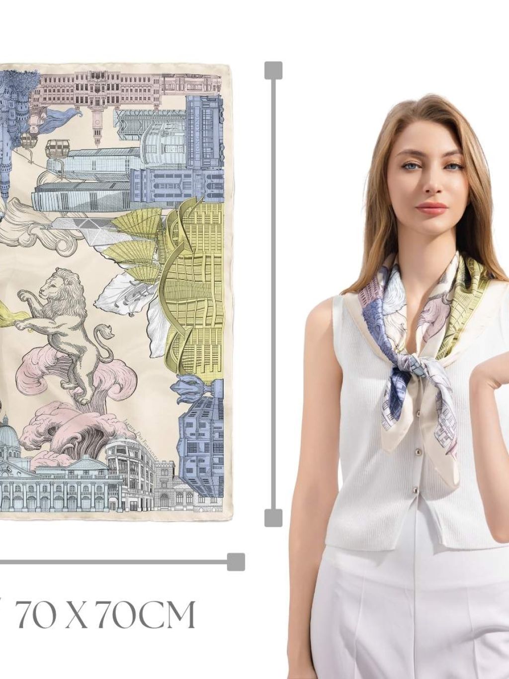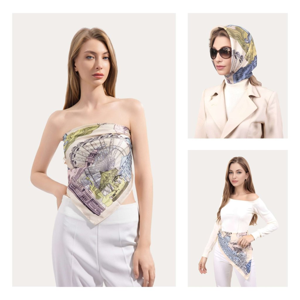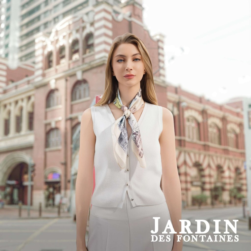 JARDIN DES FONTAINES | City Tales Honey Beige Silky Scarf (70cm)