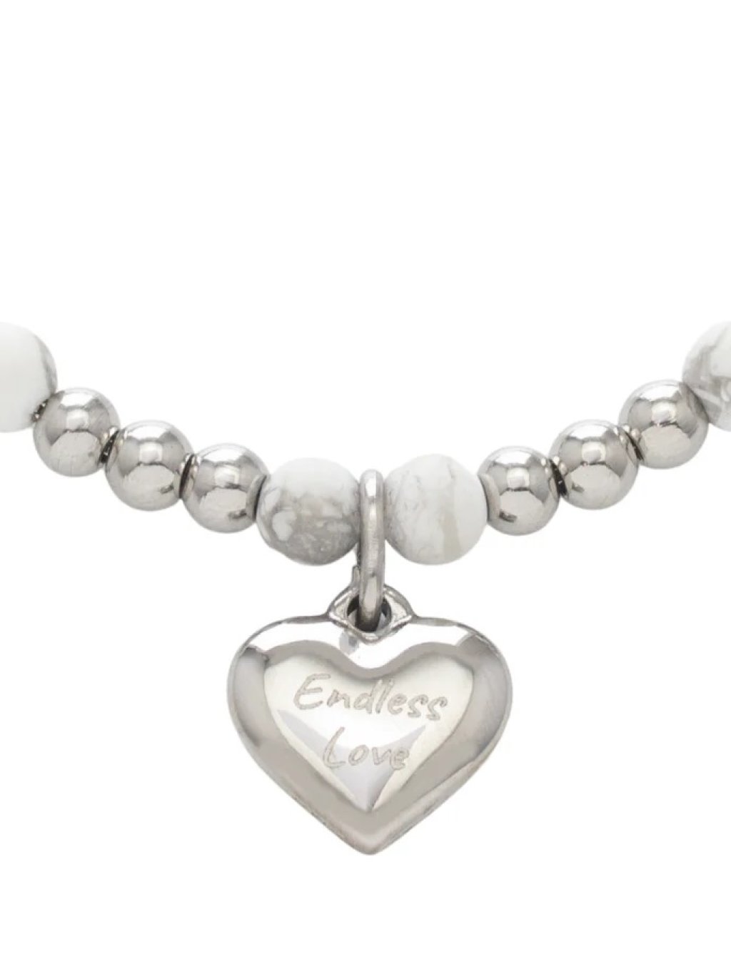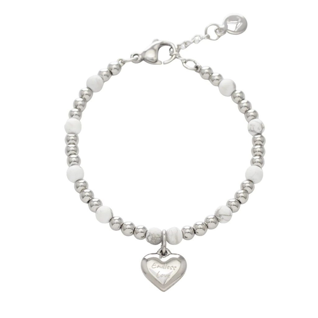 VC Walker | Love Imprinted - Stainless Steel Engraving Message Bracelet -Endless Love - Silver / Howlite