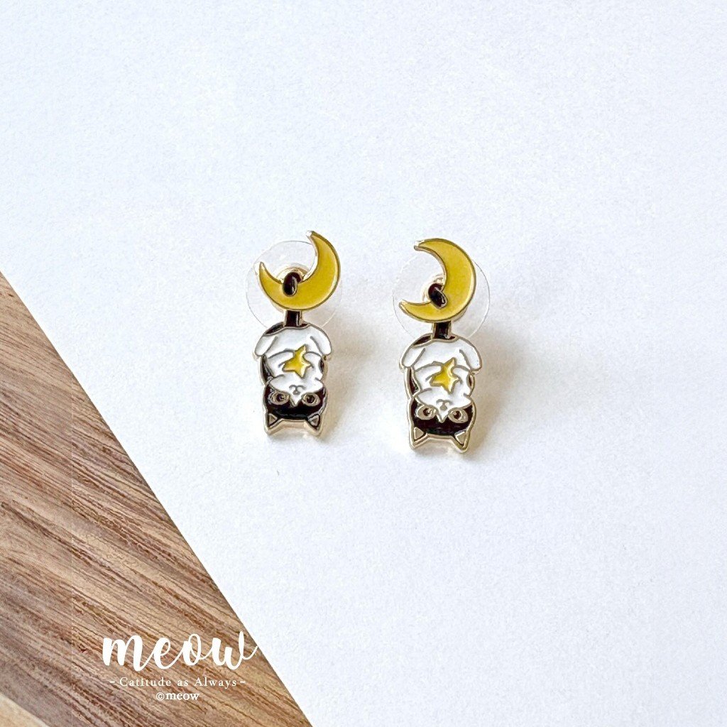 Meow | Earrings-Cat on the moon (black and white)