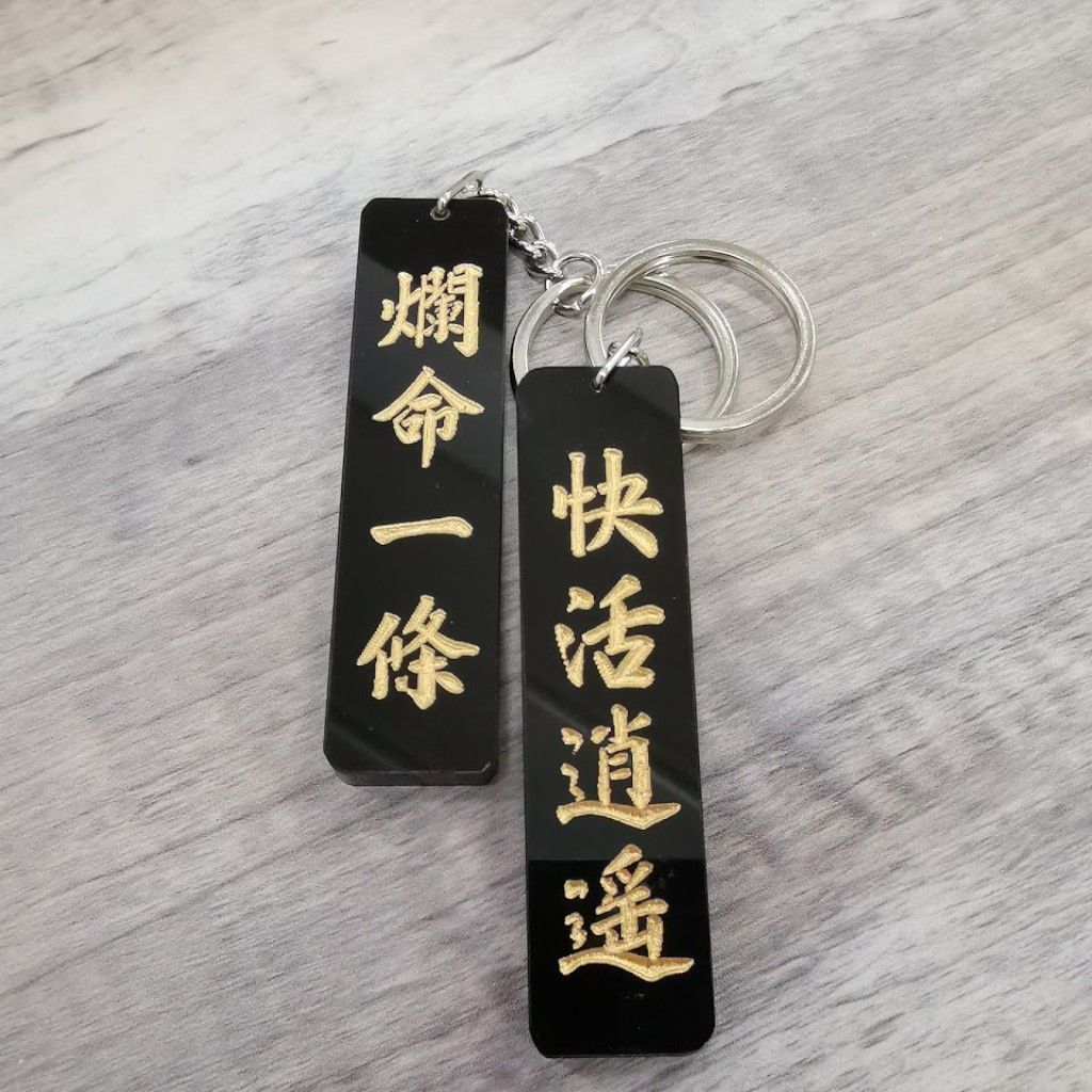 Lee Hon Kong Kai | Hong Kong-style calligraphy keychain 爛命一條 快活逍遙