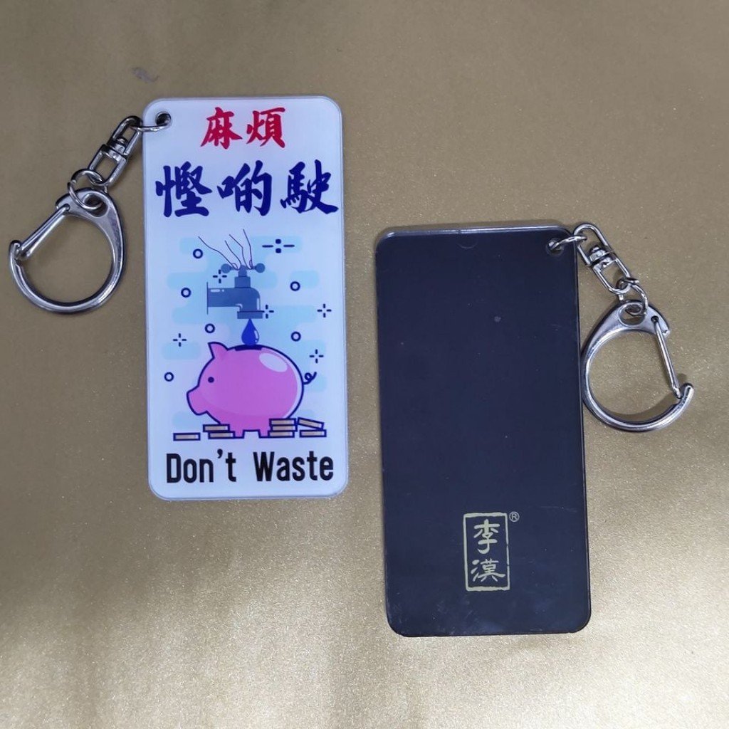 Lee Hon Kong Kai | Hong Kong illustrated keychain with famous quotes 麻煩慳啲洗 Don't Waste