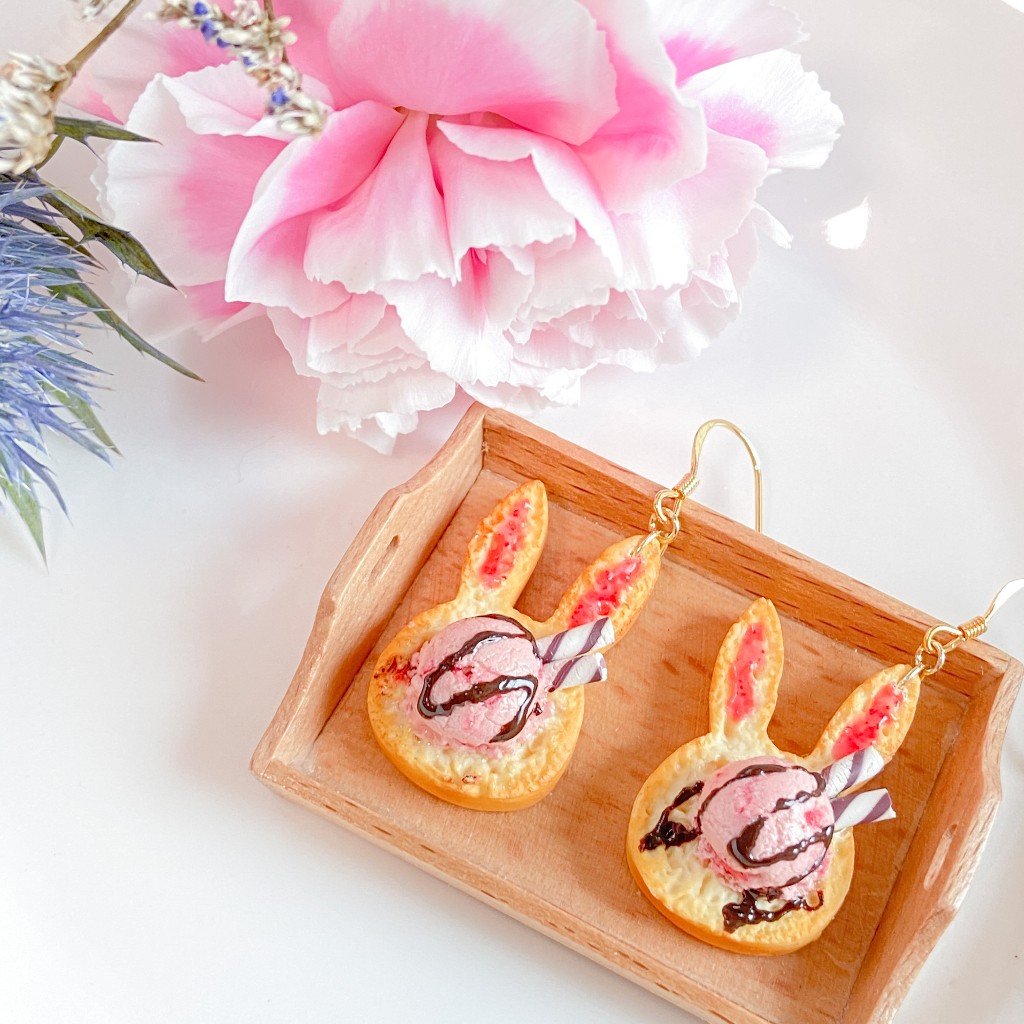 JL Grocery | Strawberry Ice Cream Bunny Toast Earring