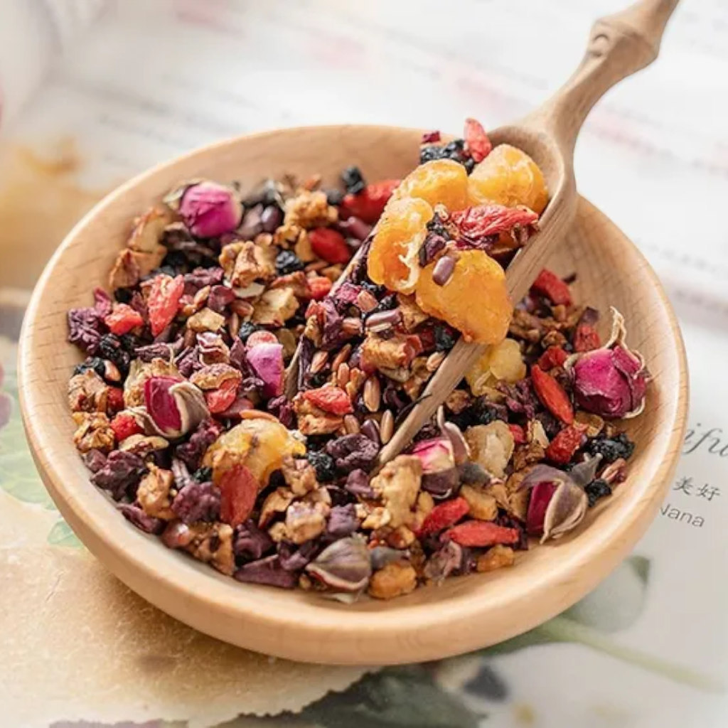 Ingredients:Red Dates, Red Beans, Red Rice, Longan Meat, Wolfberry, Mulberry, Double Rose, Beetroot