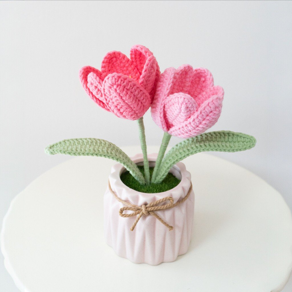 Ever Blossom Gift | Crochet Flower Potted Plant - Tulips