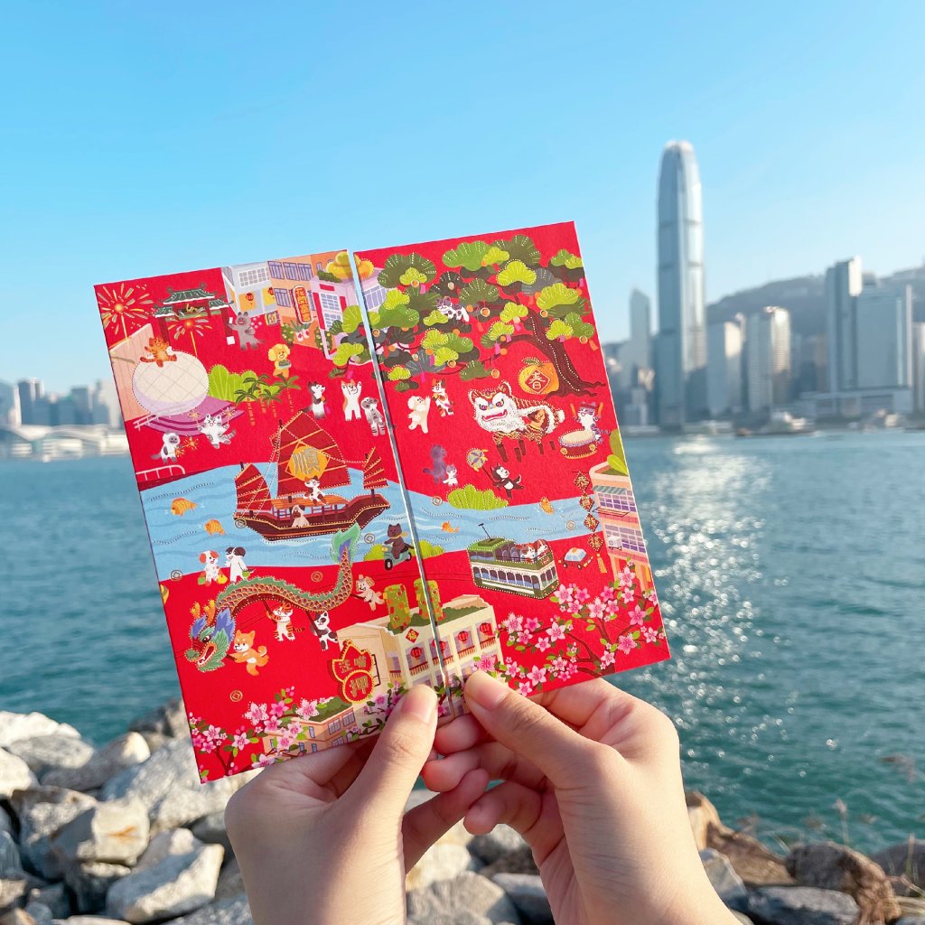 Paw Pals explore Hong Kong through four original red packet designs inspired by iconic local landmarks.