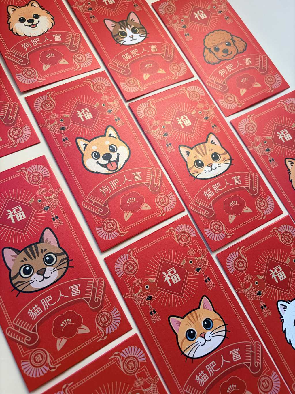Featuring irresistibly cute cat and dog portraits, this design turns the blessing “Well-fed pets, prosperous people” into the most charming New Year wish.