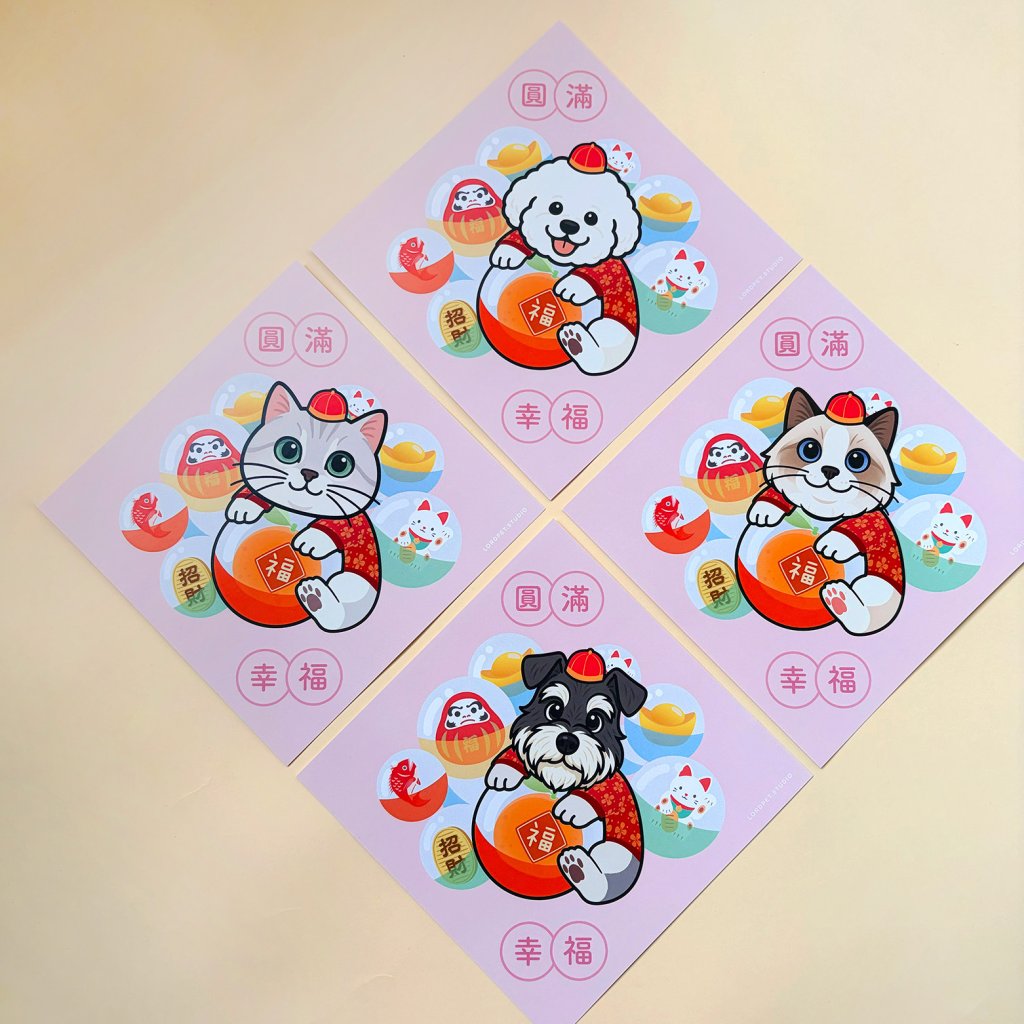 Inspired by capsule toy machines, adorable cats and dogs transform into playful capsules, adding energy, joy, and fun to your New Year blessings.