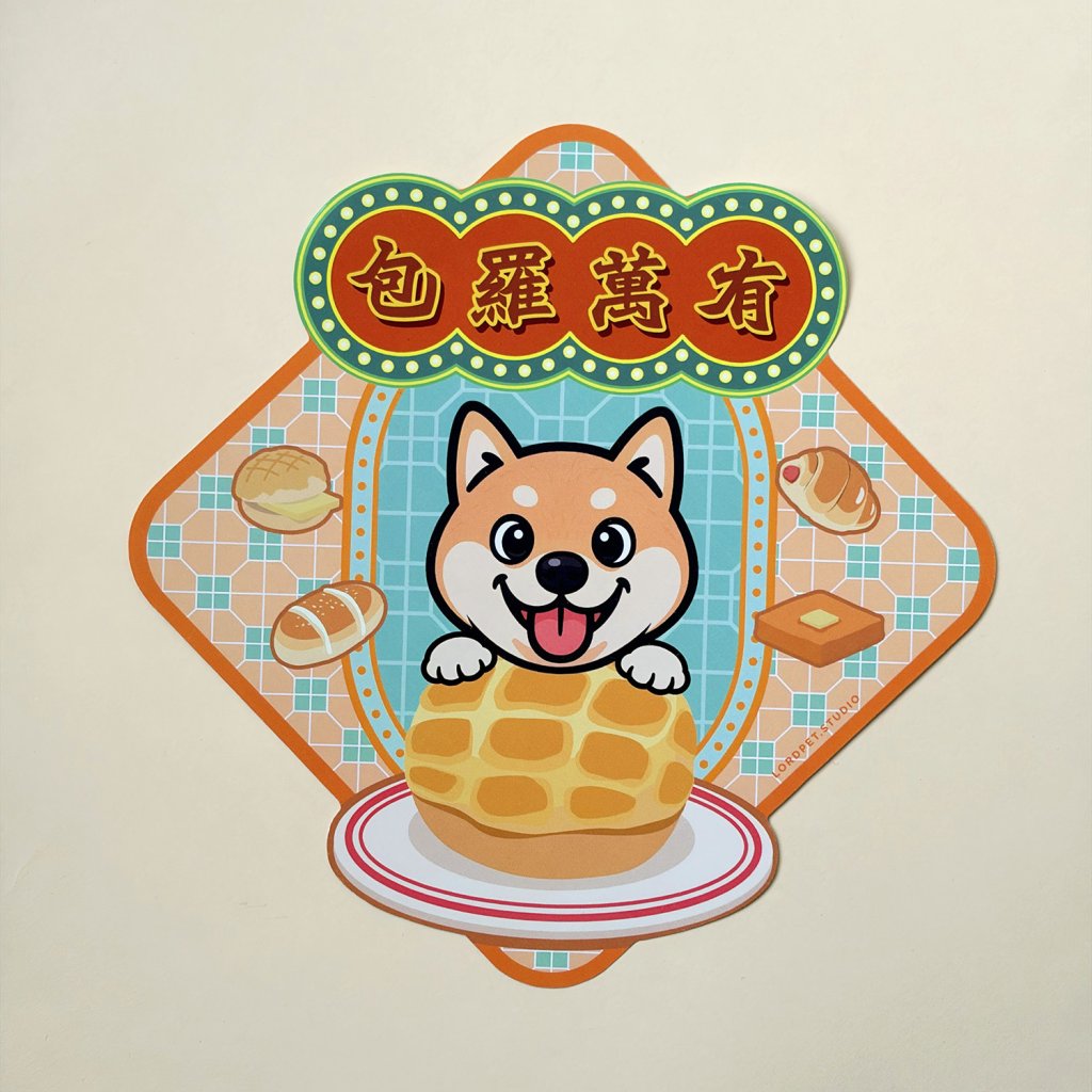Featuring the iconic Hong Kong pineapple bun as the star, paired with adorable cats and dogs, this design tucks heartfelt New Year blessings into one of the city’s most comforting local treats.