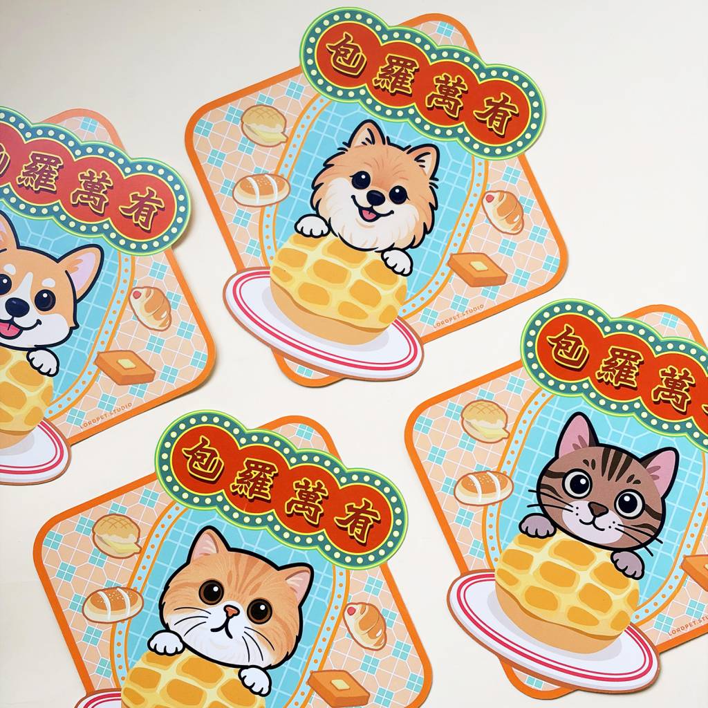 Featuring the iconic Hong Kong pineapple bun as the star, paired with adorable cats and dogs, this design tucks heartfelt New Year blessings into one of the city’s most comforting local treats.