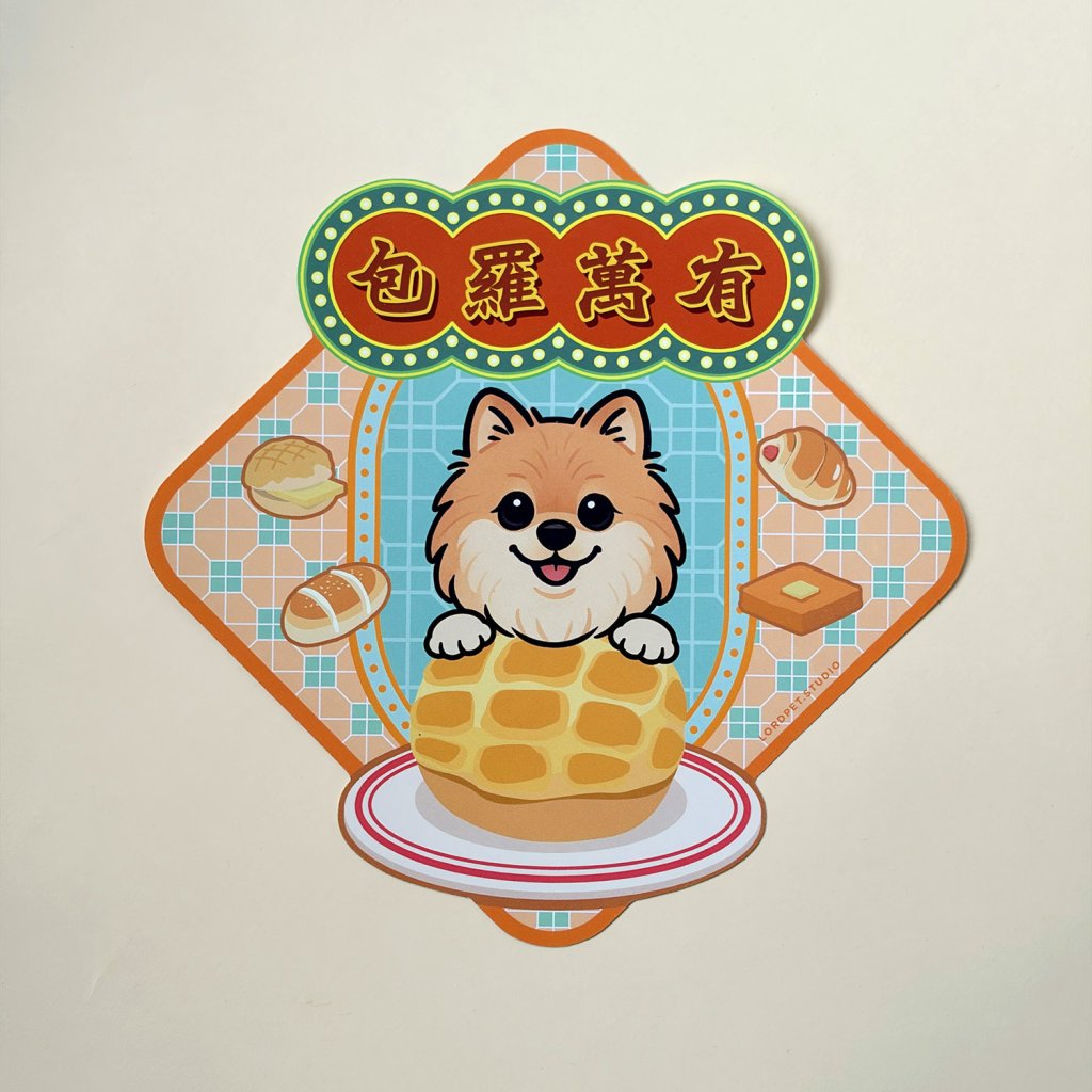 Featuring the iconic Hong Kong pineapple bun as the star, paired with adorable cats and dogs, this design tucks heartfelt New Year blessings into one of the city’s most comforting local treats.