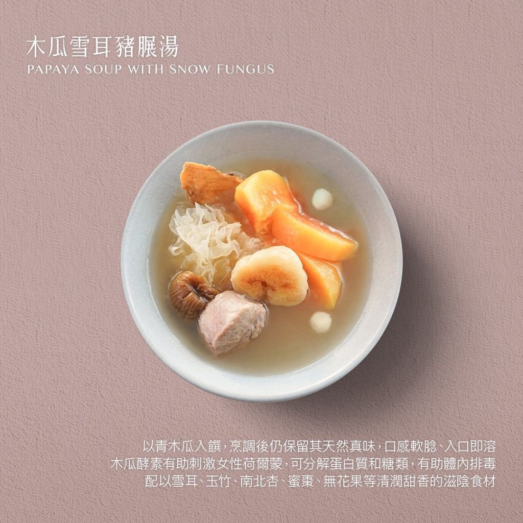 [Beauty · Papaya] Green Papaya Soup with Snow Fungus & Pork Shank A sweet, fragrant, and nourishing soup recipe, this Papaya, Snow Fungus & Pork Shank Soup is a must-try for women seeking radiant skin and a toned body. Papaya enzymes are a woman’s best friend—potentially aiding in enhancing feminine curves. Long-term consumption of papaya may promote body shaping and skin beautifying effects, while also helping break down proteins and sugars, supporting detoxification, and reducing fat absorption—ideal for those focused on slimming and body wellness.
