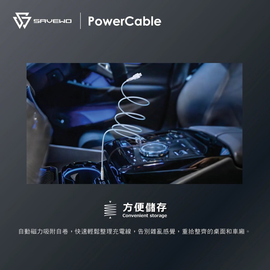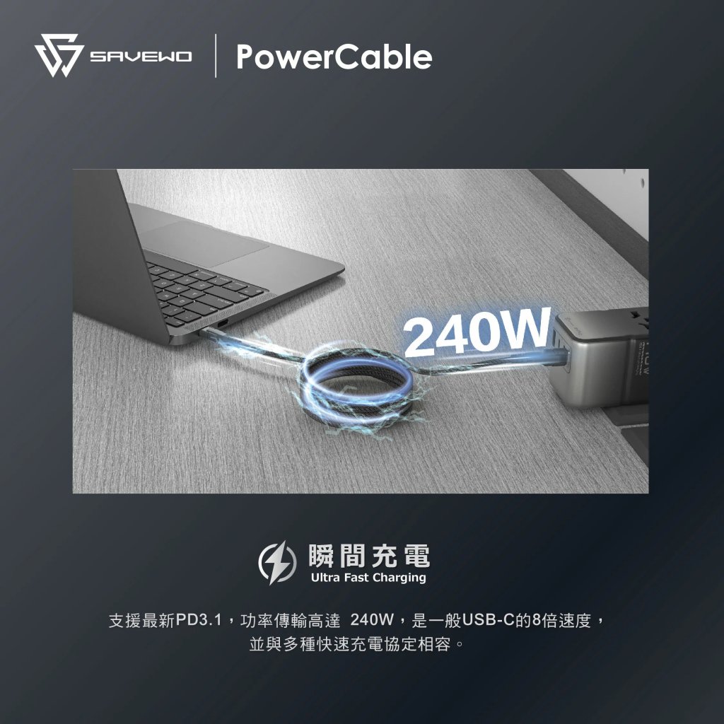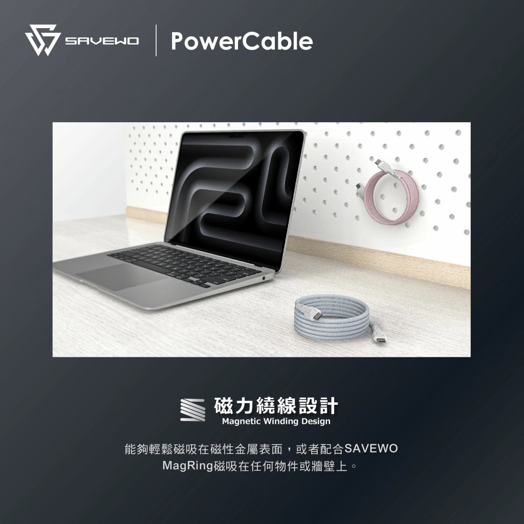 SAVEWO PowerCable USB-C Magnetic Auto-Coil 240W PD3.1 Ultra-Fast Charging Cable