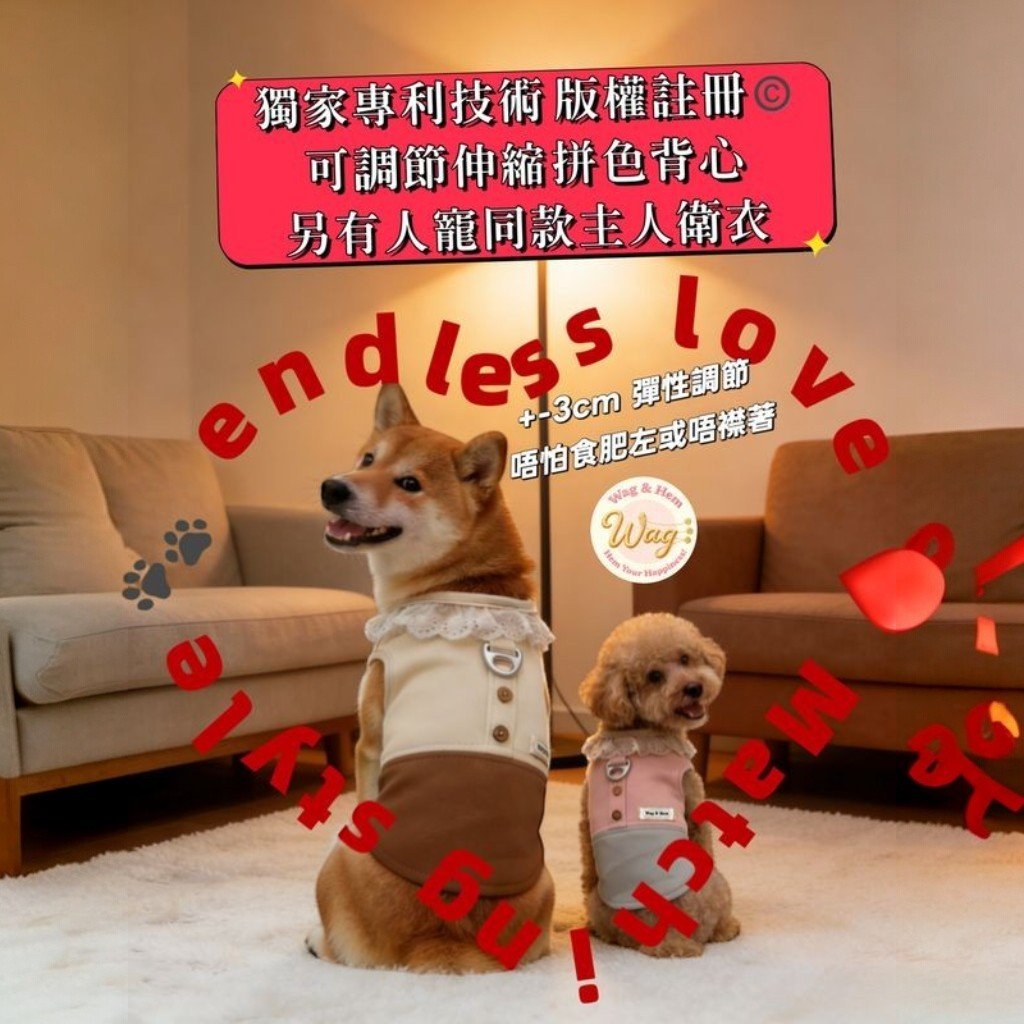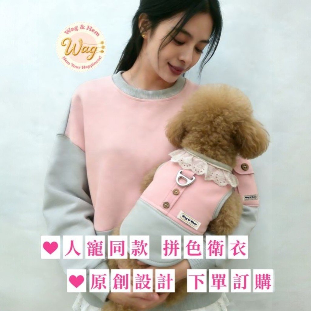 WAG & HEM | Lightweight Cotton Collar Adjustable Growth Color-Block Vest, Pink & Grey