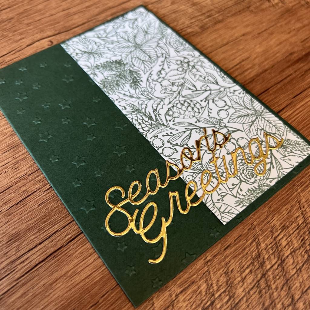 FUYACRAFT | season's greetings berries and pine branches star Christmas Card