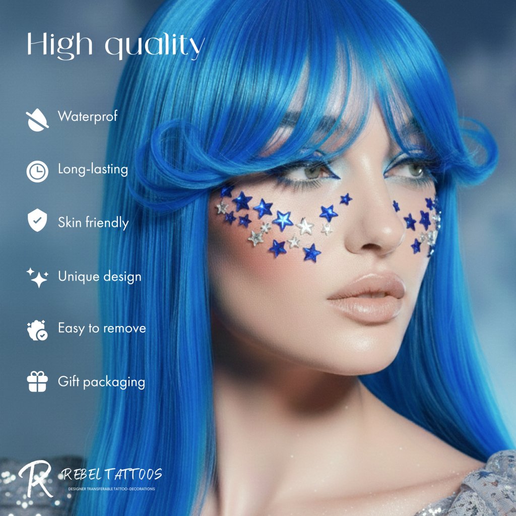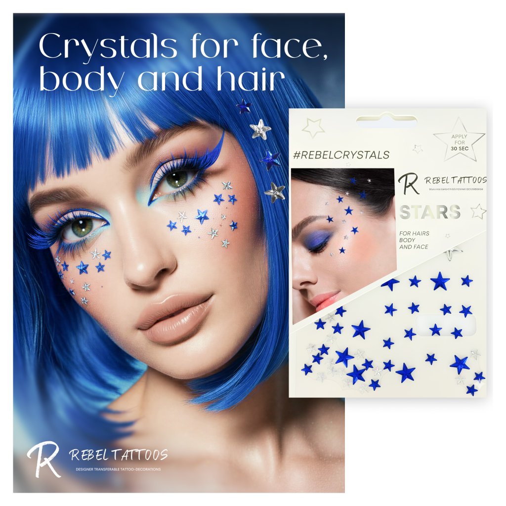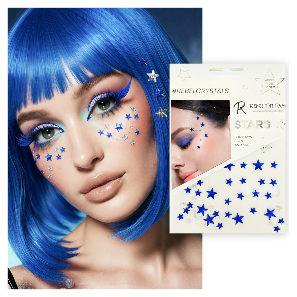 Rebel Tattoos | Body, face, hair crystals ''Blue Stars''