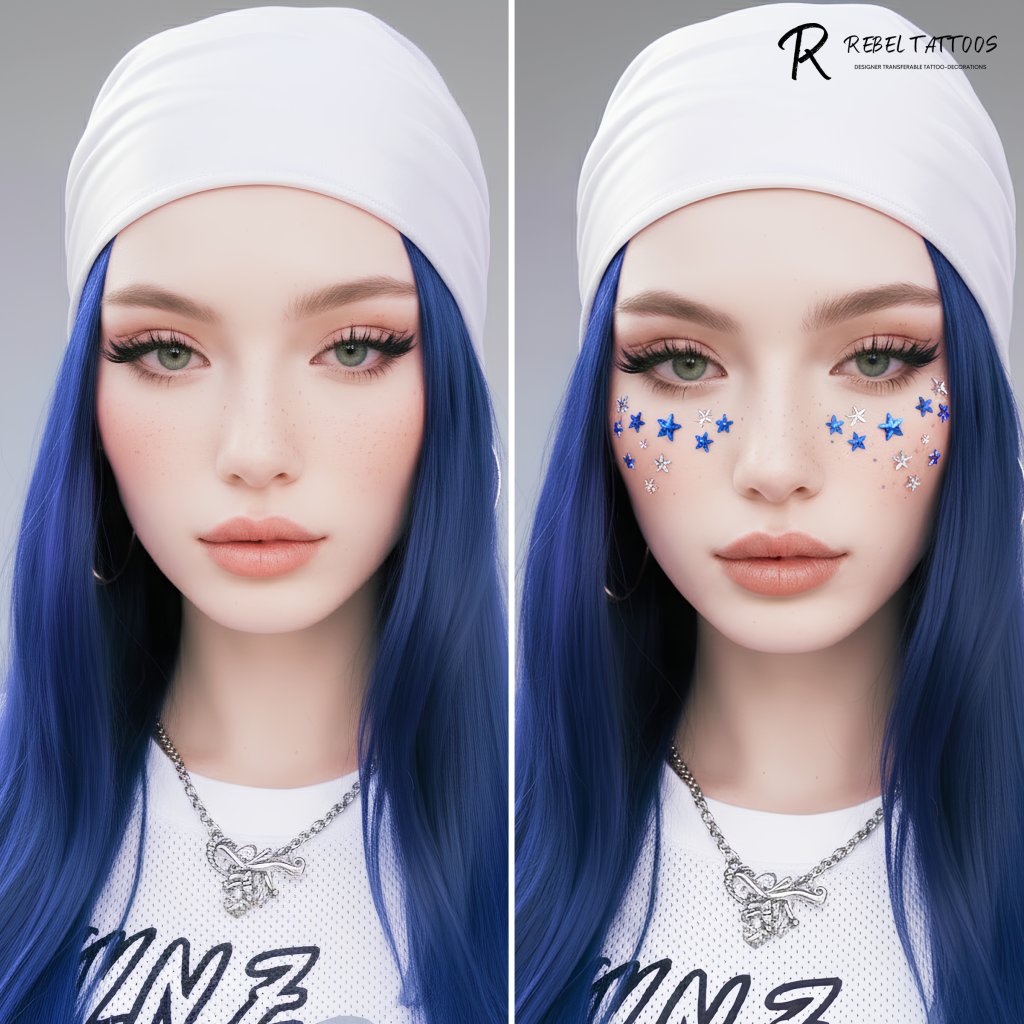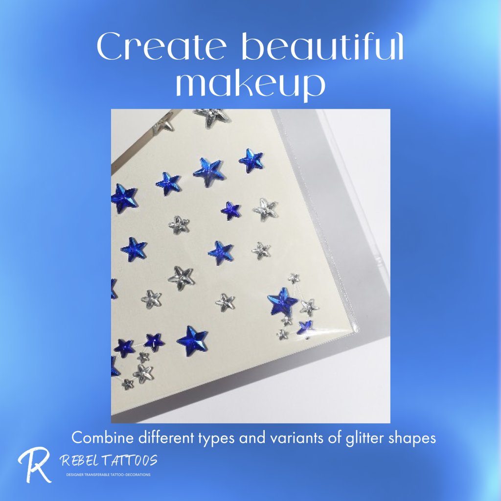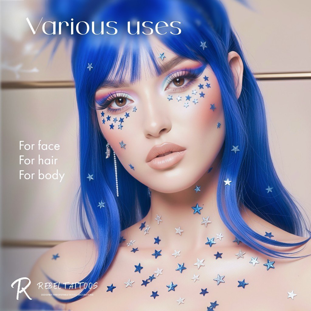 Rebel Tattoos | Body, face, hair crystals ''Blue Stars''